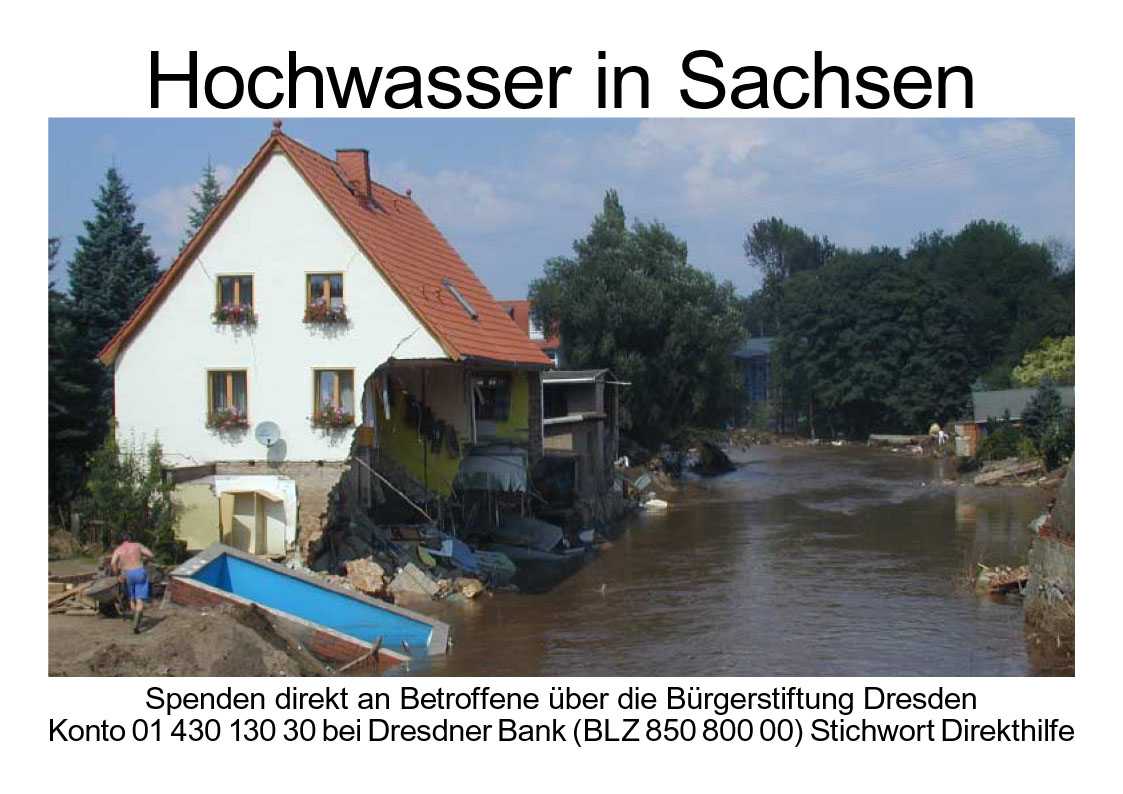 Das Ausmaß der durch das Hochwasser von Weißeritz, Müglitz und Elbe entstandenen Schäden ist immens. Ohne Hilfe von außen wird es in Dresden und Umgebung nicht möglich sein, für viele Menschen eine halbwegs normale" Lebenssituation zu schaffen.